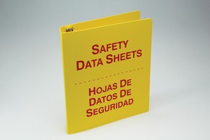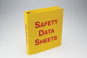 SDS Binders Organize and store your SDS documents in plastic binders. Front cover and spine have contrasting red letters. 3-ring binder has 36" metal security chain. Binders are available in white or yellow with red lettering.